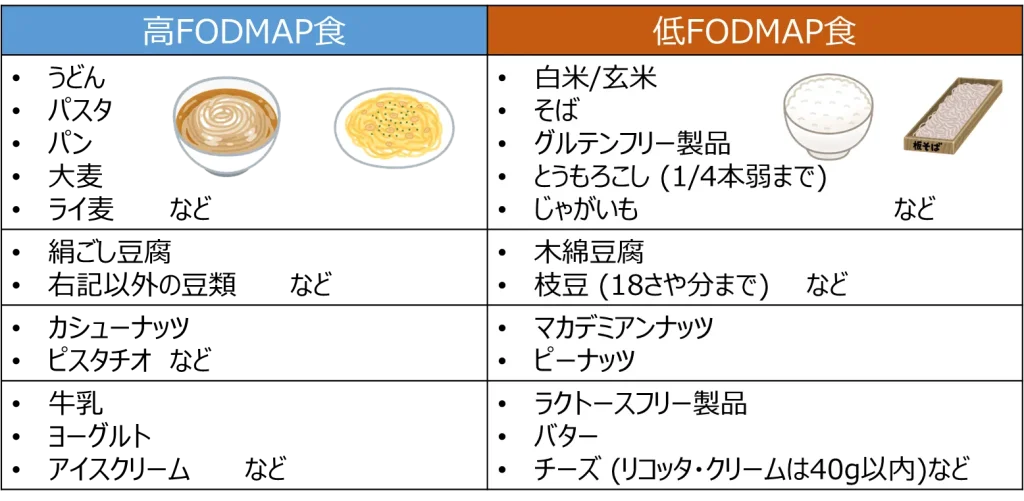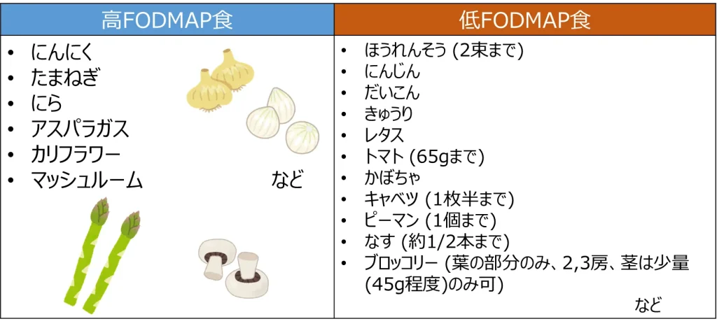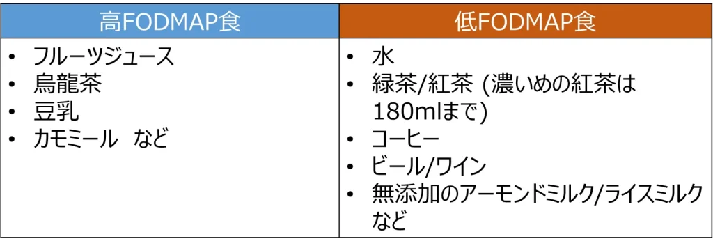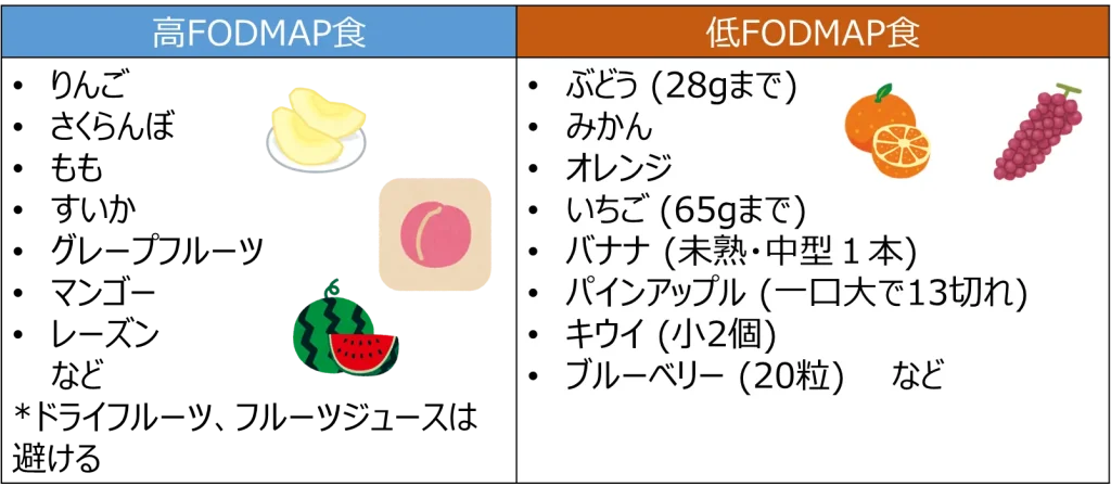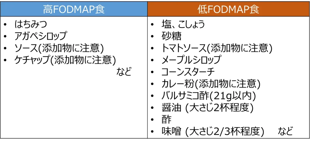 量によっては低FODMAP/高FODMAPの区別が変わるものが多いのでお気をつけください。