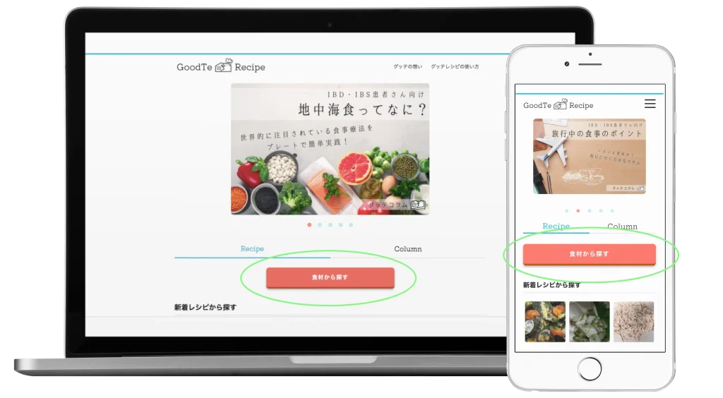 「食材から探す」から食べたい野菜を入力して頂くと色々なレシピが出てきますのでお試しください。