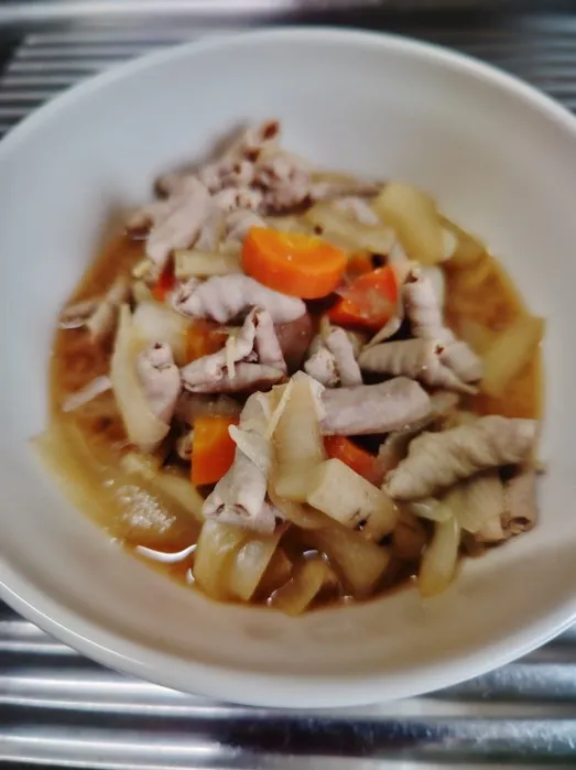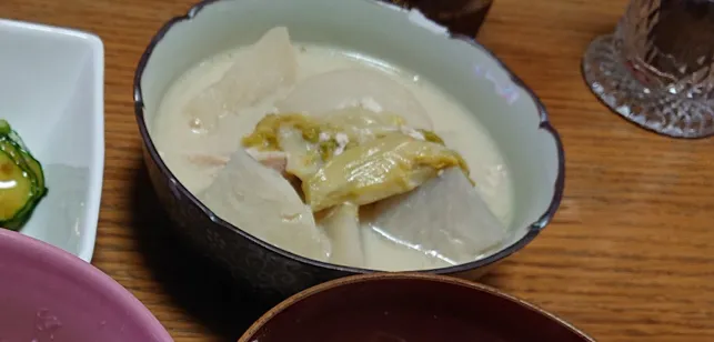 蒼@くっきんぐさんレシピ「里芋と白菜と鶏むね肉の豆乳味噌煮」
