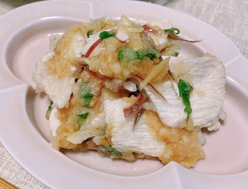みくろんさんレシピ「鶏むねしゃぶの香味みぞれ和え」