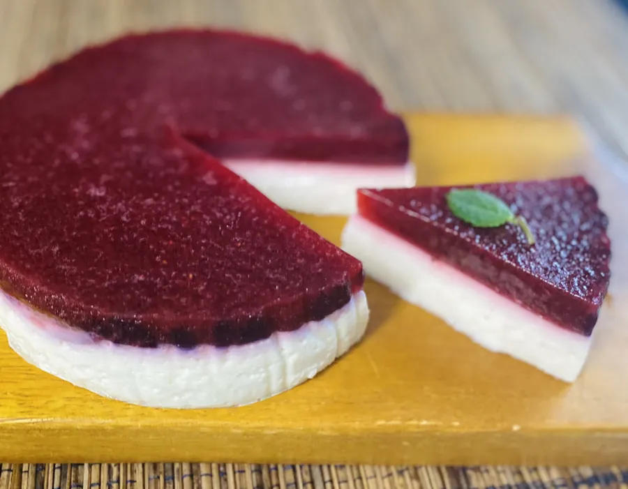 乳製品、小麦製品不使用のチーズケーキのようなお豆腐ケーキです。白味噌とレモン、塩が含まれていて、どんな味がするのか想像するとワクワクします。