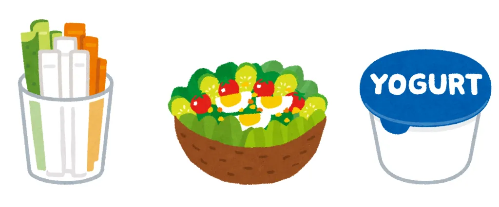 おすすめは緑が多いものや野菜スティックです。野菜スティックに付いているディップソースは少量にするか、もしくは何もつけずに食べると脂質を抑えられます。 - 揚げ物以外のお惣菜