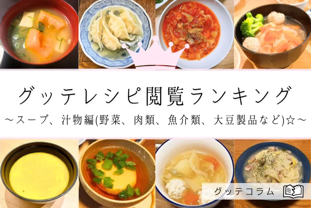 恒例となってきた、この「グッテレシピ閲覧ランキング」も4回目になりました。今回は「スープ、汁物」編です。スープや汁物は体温を上げるだけでなく、満腹感を得やすく、さらに具だくさんにすると減塩の効果もあります。